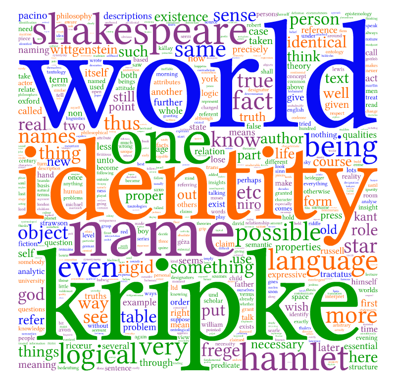 How about identity? Kripke claims that to deny that people or things are identical with themselves is a logical contradiction (1980: 53). This sounds difficult but only until we think of identity as one of the “properties”, “qualities”, “attributes” of a thing, i.e., until we think about identity as if it were a predicate, something we state about an object. But why is it proper names that — as Kripke claims — are most likely to become rigid designators? I may also put the question this way: why was it proper names through which Kripke encountered the identity–problem? Because proper names are more typical of naming particular beings (persons or things) than other words. Particularity is one of the most important “features” or “characteristics” of identity; “feature”, or “characteristic” is, I admit, not the most fortunate term because identity is something, as it will become perhaps clearer below, that cannot be analysed any further. Let us say that particularity “goes along” with identity: identity is always particular. But the problem is that, on the one hand, practically anything can be a carrier of identity. On the other hand, the fact that a proper name is expressive of identity is often shrouded, veiled by several factors.