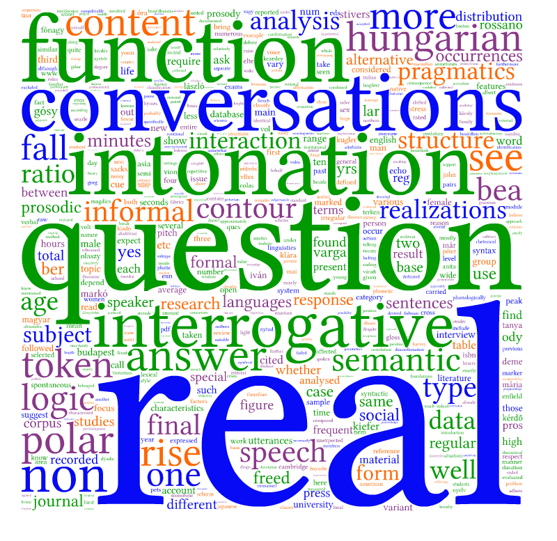 Markó, Alexandra. 2007. Kérdő funkciójú hanglejtésformák a spontán beszédben. [Intonation contours with interrogative function in spontaneous speech]. Beszédkutatás 2007: 59–74.