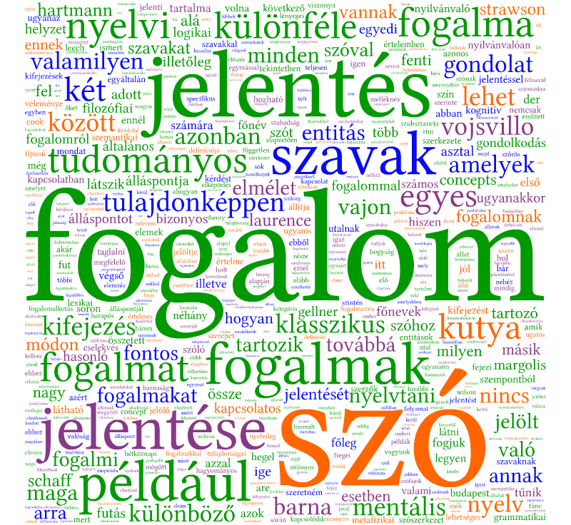 Ez viszont átvezet egy másik problémához, amivel nem szeretnék foglalkozni, mivel nem segíti a bevezetőben említett probléma tisztázását: jelöltek és jelölők milyen fajtáival és viszonyával kell számolnunk. Összefoglalásként elmondható, hogy a fogalom szó nominális kapcsolatokban képes értelmes szerkezeteket adni, és ebből — valamint a már hivatkozott hagyományos nyelvtani vélekedésből — adódhat az az álláspont, miszerint a fogalom szubsztanciális természetű.