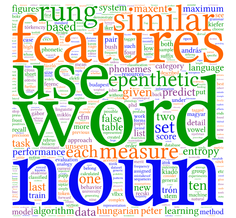 Rung, András. 2012. Magyar főnévi alaktani jelenségek analógiás megközelítésben. [An Analogy-based Approach to Hungarian Noun Morphology]. PhD dissertation, Eötvös Loránd University, Budapest.